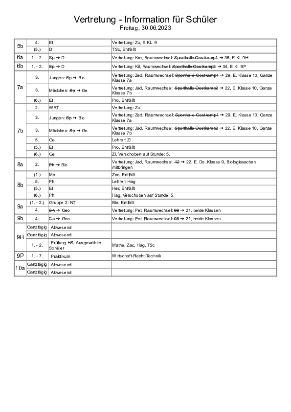 8. Stunde 14:10 Uhr - 14:55 Uhr